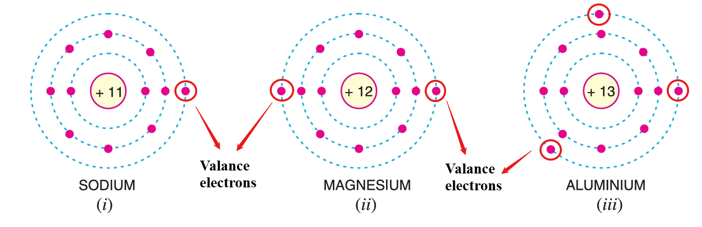 - When the number of valence electrons of an atom is less than 4 (i.e. half of the maximum eight electrons), the material is usually a metal and a conductor. Examples are sodium, magnesium and aluminium which have 1, 2 and 3 valence electrons respectively.