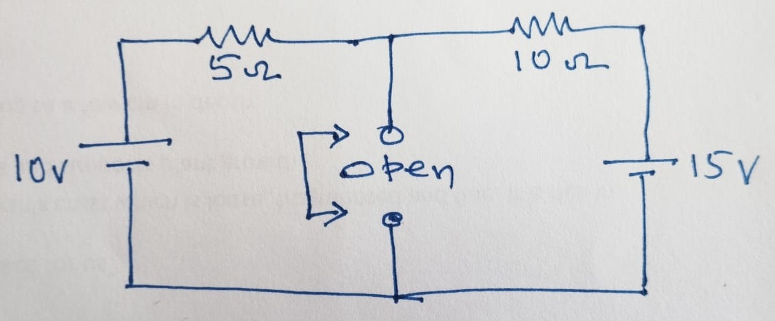 The total contribution of open circuit voltage due to 10 V and 15 V is calculated as: